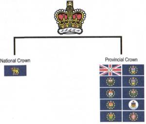 Canada’s Constitutional Monarchy also includes an approximation of what the constitutional scholar David E. Smith has dubbed “the compound monarchy” that constitutes Canada as a federation. The diagram depicts the classical federalism that the Judicial Committee of the Privy Council shaped in Canada: the provinces and the federal are co-equal in their spheres of jurisdiction. Parenthetically, republicans often overlook the Crown in its capacity as the guarantor of Canadian federalism and rarely explain how their new form of government would take into account the void left by the elimination of the provincial Heads of State, the Lieutenant Governors.