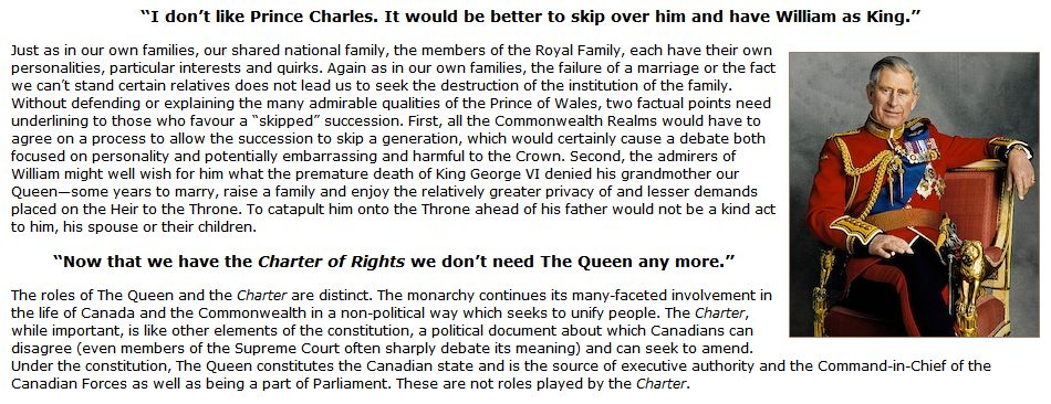 The Monarchist League of Canada includes a helpful section on its official website dedicated to debunking, in a concise manner, some of the common myths and misconceptions toward constitutional monarchy.