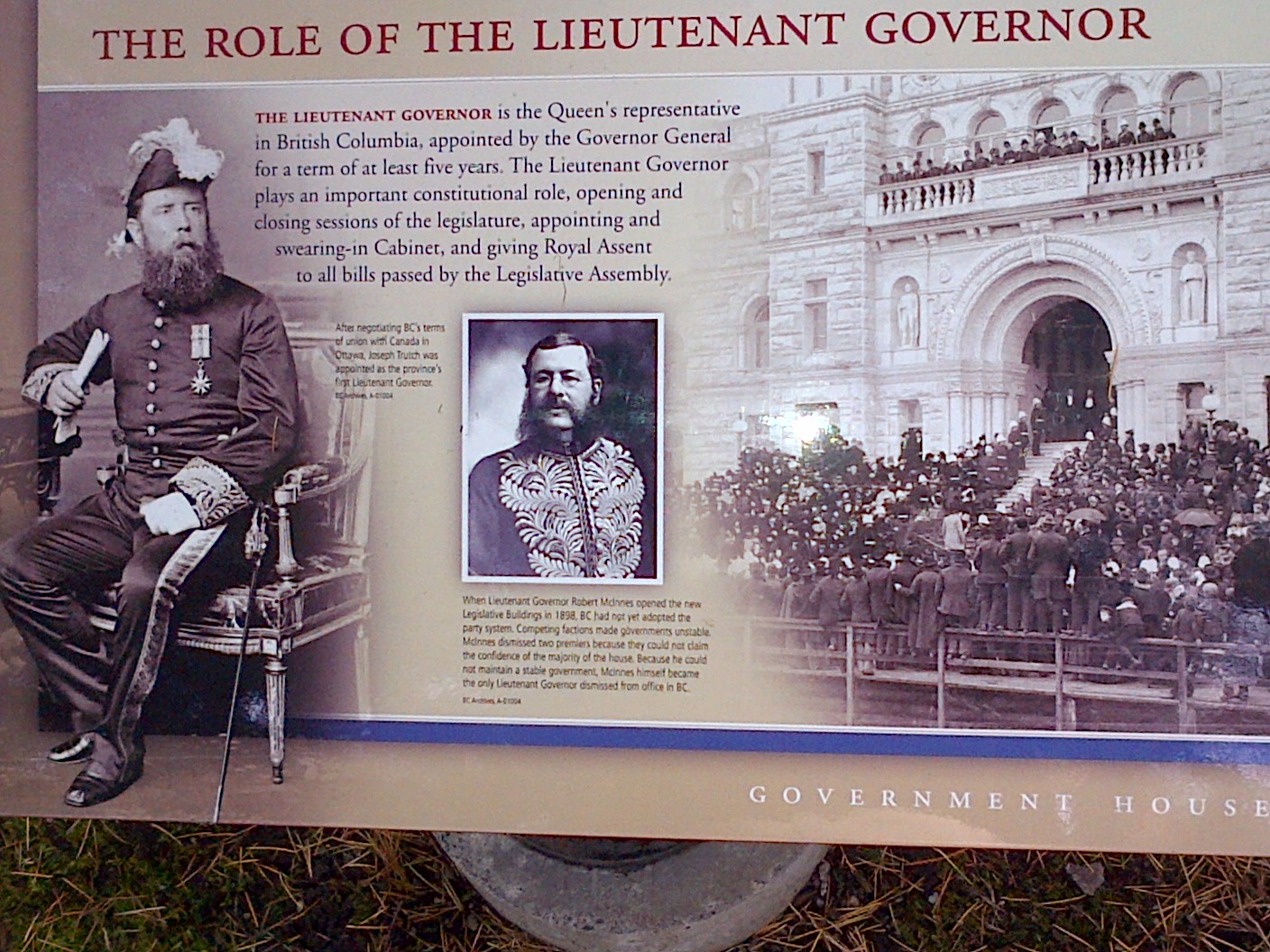 Government House itself flies the Union Flag and British Columbia’s provincial flag. The Lieutenant Governor’s Standard flies in the back garden (not visible here).