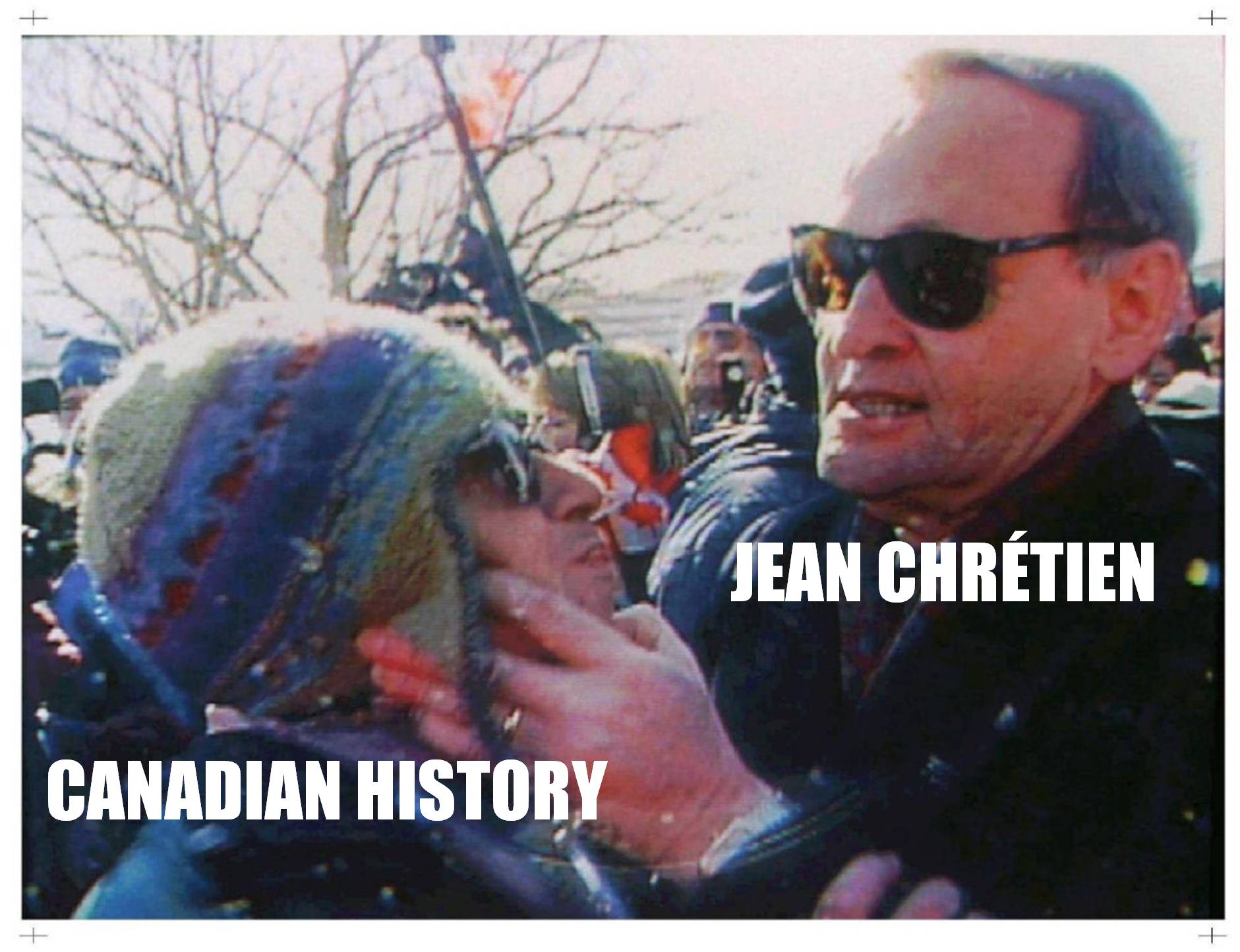 Well, which is it? Was the question in 1995 so convoluted that voting for it meant nothing? Or was the question so dire that voting for it would have led to the irreversible destruction of Canada? Chrétien massively contradicts himself, and he does not contain the multitudes of Walt Whitman. Both of his assertions could be wrong, but one of them must be wrong. Chrétien has given Canadian history itself the Shawinigan Handshake.