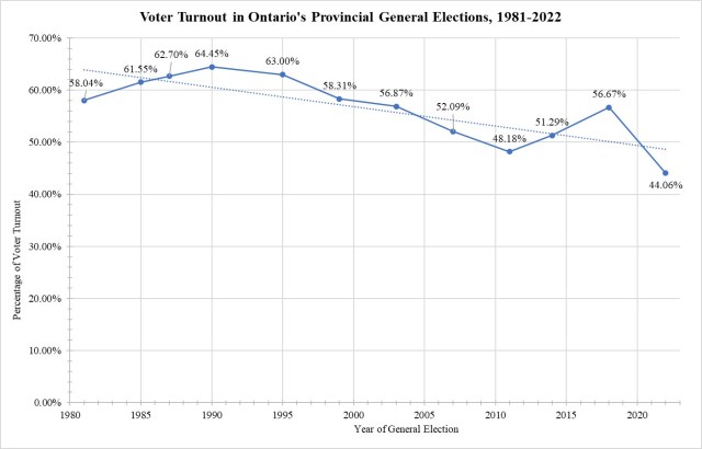 [9] Elections Ontario, “General Elections Statistics from the Records,” accessed 9 November 2023.