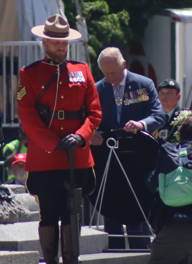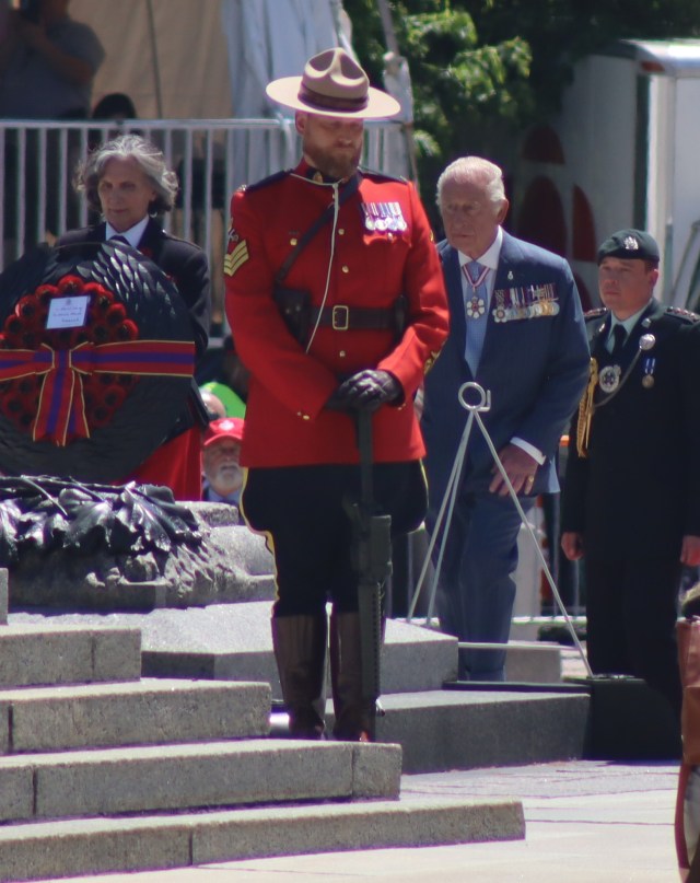From a vantage point on Parliament Hill, I took these photos of His Majesty King Charles III of Canada while he and the Queen consort greeted dignitaries at the national cenotaph.