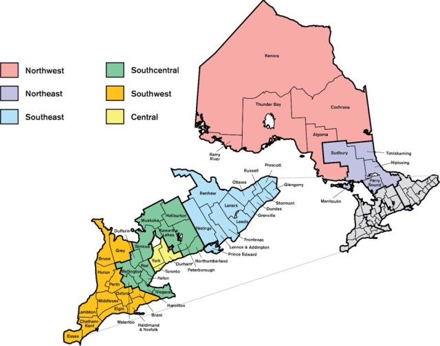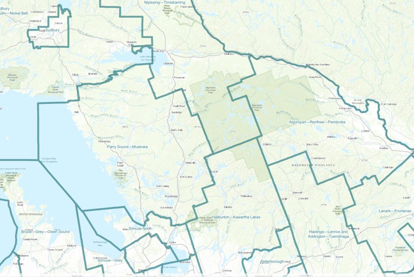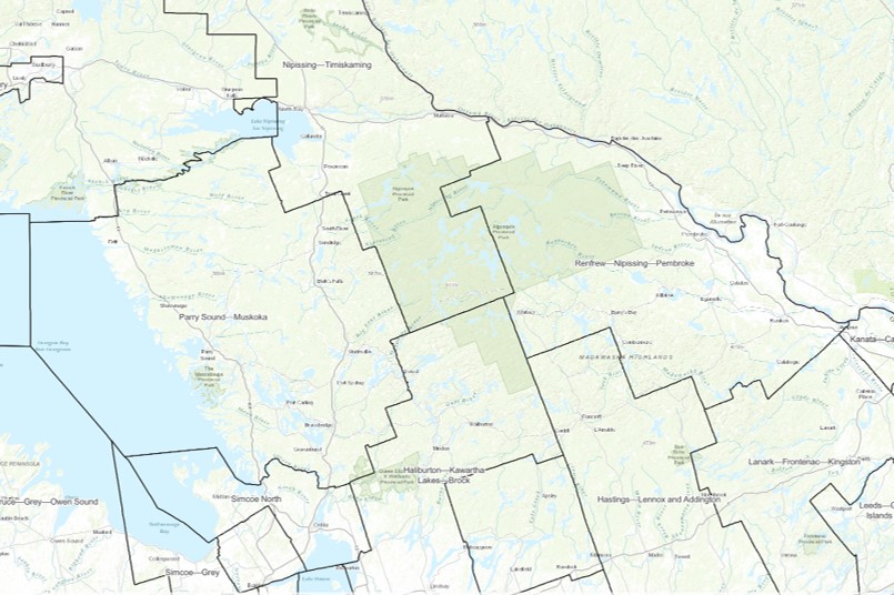 Ontario’s Representation Act, 2015 expanded the legislative assembly to 124 single-member districts overall, declared the “111 southern electoral districts” as identical to those 111 federal electoral districts under the Representation Order, 2013, but gave Northern Ontario 13 provincial electoral districts as opposed to the 10 federal electoral districts covering this same region under the Representation Order, 2013. This provincial legislation therefore set the border between Northern Ontario and Southern Ontario along the southern and eastern boundaries of the provincial electoral districts of Parry Sound—Muskoka and Nipissing where they meet the identical federal and provincial ridings of Simcoe North, Haliburton—Kawartha Lakes—Brock, and Renfrew—Nipissing—Pembroke.